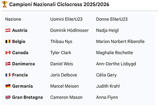 L'elenco di tutti i campioni nazionali...in attesa del mondiale!