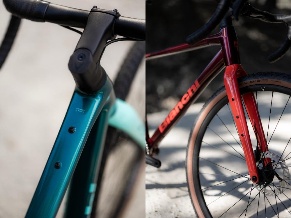 Telaio completamente ridisegnato, forcella in carbonio, compatibilità 1x/2x e predisposizione per il nuovo manubrio integrato Bianchi.