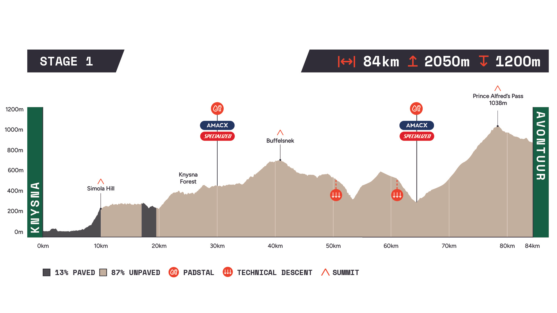 Dalla località costiera di Knysna, nella regione del Western Cape, i partecipanti hanno affrontato una prima tappa di circa 85 chilometri e oltre 2.000 metri di dislivello, con arrivo ad Avontuur, nel cuore del Great Karoo.
