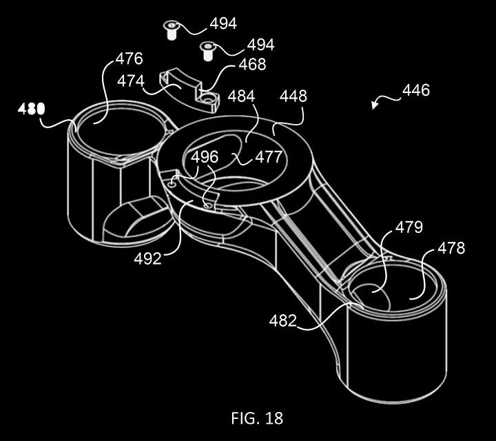 Altro aspetto interessante riguarda la possibilità di regolare l’angolo massimo di rotazione. Il brevetto parla di un range compreso indicativamente tra 100° e 160°, ottenibile sostituendo il cosiddetto “stop body” oppure sfruttando differenti punti di fissaggio.