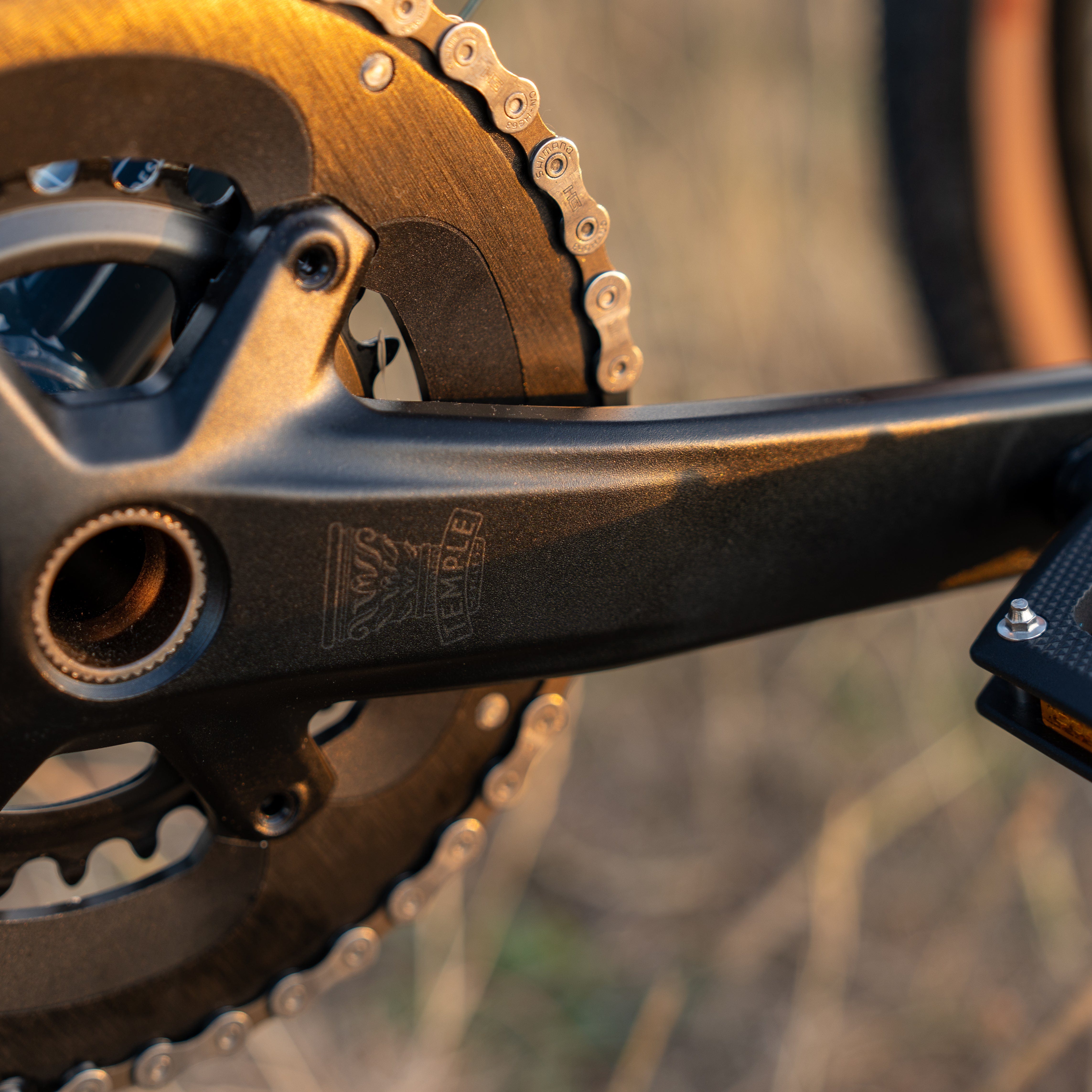 Per l’impianto frenante, Temple ha optato per i collaudati TRP Spyre a disco meccanici, semplici da mantenere e riparare anche lontano da un’officina. Le ruote sono costruite con mozzi Shimano RS470 e cerchi WTB ST i25 tubeless ready, montati con coperture WTB Vulpine da 40 mm, un compromesso ideale tra comfort, scorrevolezza e resistenza. Non mancano dettagli che confermano l’approccio pragmatico del marchio: serie sterzo e movimento centrale sigillati, raggi a doppio spessore in acciaio inox con nipples in ottone, componentistica marchiata Temple e sella Bristol, sviluppata internamente.