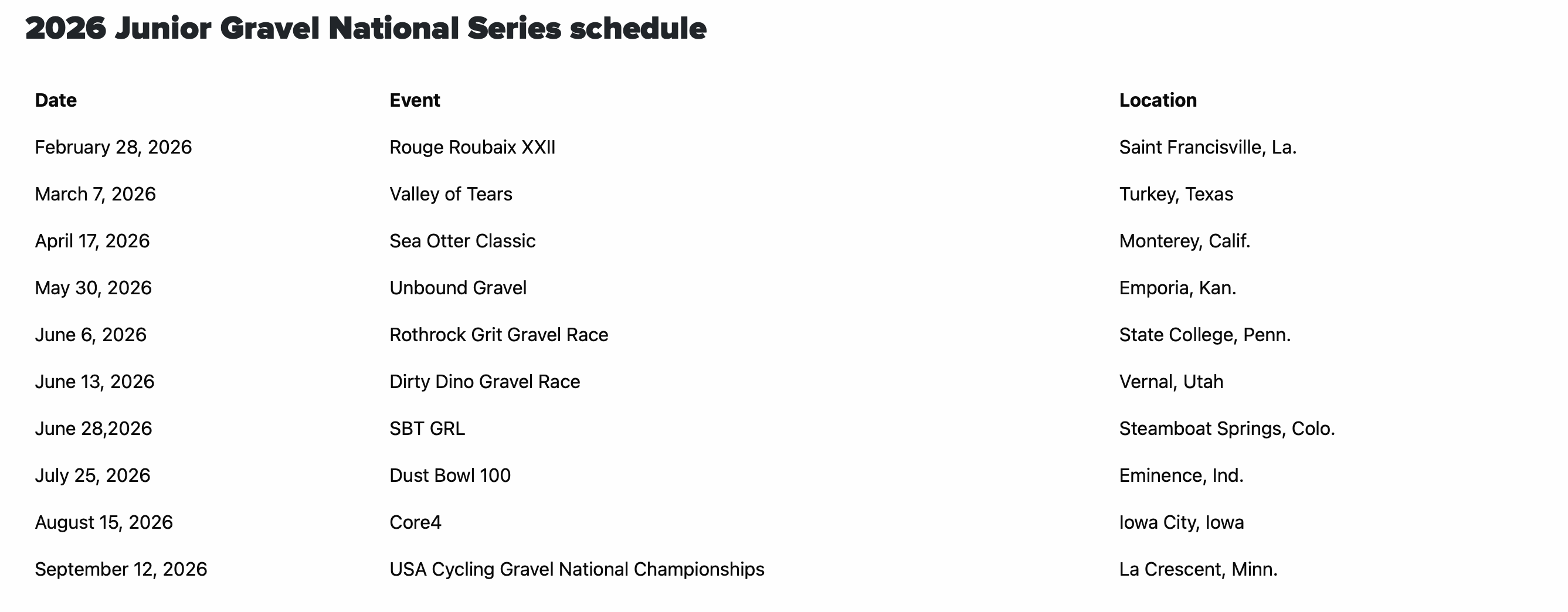 Mentre in Europa il Gravel continua a vivere in quel limbo affascinante tra il “rifugio per ex pro” e la nuova frontiera dell’endurance amatoriale, oltreoceano la musica sta cambiando radicalmente. USA Cycling ha appena sganciato la bomba: il calendario della Junior Gravel National Series 2026 non solo raddoppia, ma si trasforma in un vero e proprio ecosistema di sviluppo per i talenti dai 15 ai 18 anni.