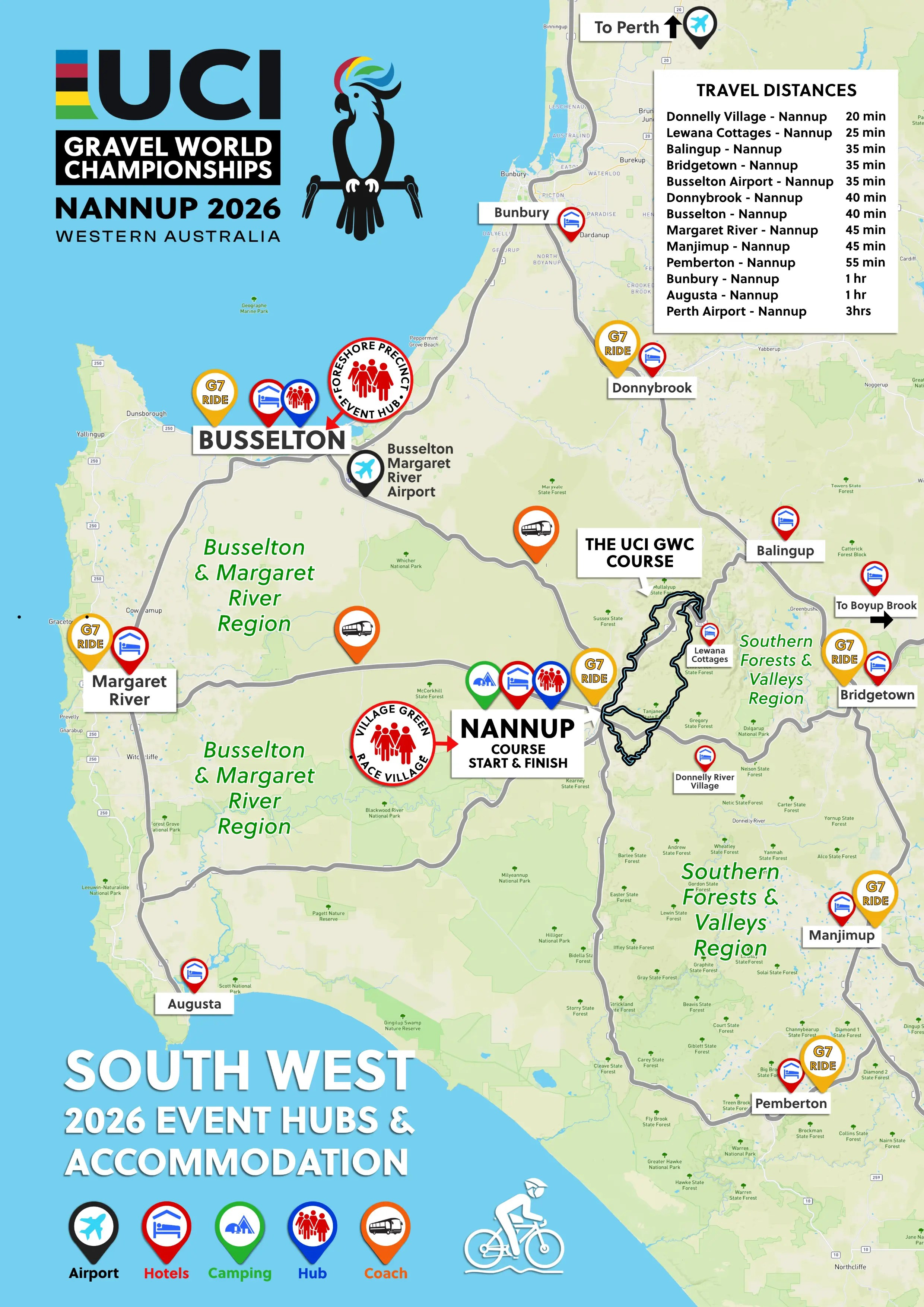 Nel 2026 l’UCI porterà per la prima volta nella storia il Campionato del Mondo Gravel Down Under. La località di Nannup, nello stato dell’Australia Occidentale, ospiterà il 10 ottobre 2026 la rassegna iridata che chiuderà la stagione UCI Gravel World Series.